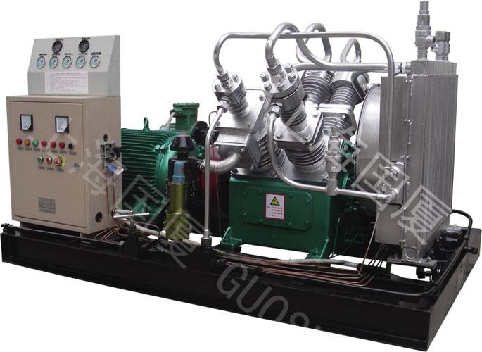 400公斤壓力空氣壓縮機主要用于油田注汽,鉆井、海洋勘探,軍工,檢漏,吹掃,船舶等行業(yè)。廣泛適用于油田專用開采、化工、有色金屬、科研院校、國防軍工、氣密性檢測、航天航空等領(lǐng)域。DX系列400公斤壓力空氣壓縮機由上海國廈壓縮機有限公司研發(fā)生產(chǎn),是一種高壓力且大排量的高壓供氣設(shè)備。具有能耗低,性能穩(wěn)定,維護簡單的優(yōu)點,且結(jié)構(gòu)緊湊,占地面積小,造型美觀,設(shè)計先進,機組振動小,由電動機或柴油機驅(qū)動,性價比高于國外同類產(chǎn)品。作為中國軍用壓縮機的搖籃,建廠10余年來國廈壓縮機因質(zhì)量高信譽好而蜚聲海內(nèi)外。400公斤壓力空氣壓縮機的工作原理是將自然狀態(tài)下的空氣經(jīng)過五級壓縮,壓縮為10Mpa-40Mpa(兆帕)的壓力另外我司高壓空氣壓縮機可根據(jù)用戶要求靈活設(shè)計產(chǎn)品的壓力和排氣量,小型高壓空氣壓縮機的每分鐘排氣量0.1-0.5立方,壓力達40MPA,重量小的只有40Kg;大型高壓空氣壓縮機每分鐘排氣量1-60立方,壓力可達40MPA,客戶要根據(jù)自己的要求靈活選擇合適的壓力和排氣量,本文僅僅是部分樣品。